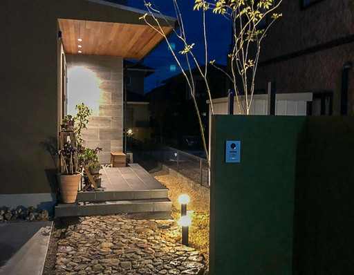 建物の外観のテイストを考慮し、アメリカンになりすぎず、門壁を木で構えることで全体的にモダンな雰囲気を出しました。